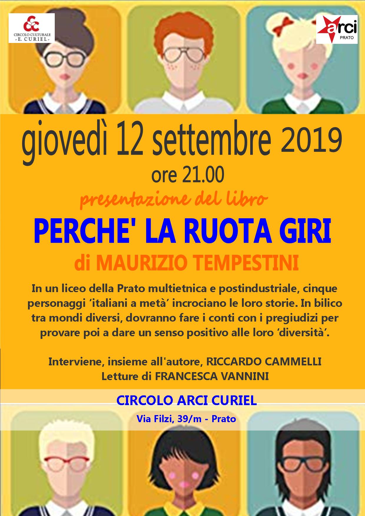 Giovedì 12 settembre, alle ore 21:00 al Circolo Arci E. Curiel (via Filzi 39/m, Prato) incontro con Maurizio Tempestini, autore del libro “Perché la ruota giri”. Interviene, insieme all’autore, Riccardo Cammelli. Letture a cura di Francesca Vannini. Ingresso libero