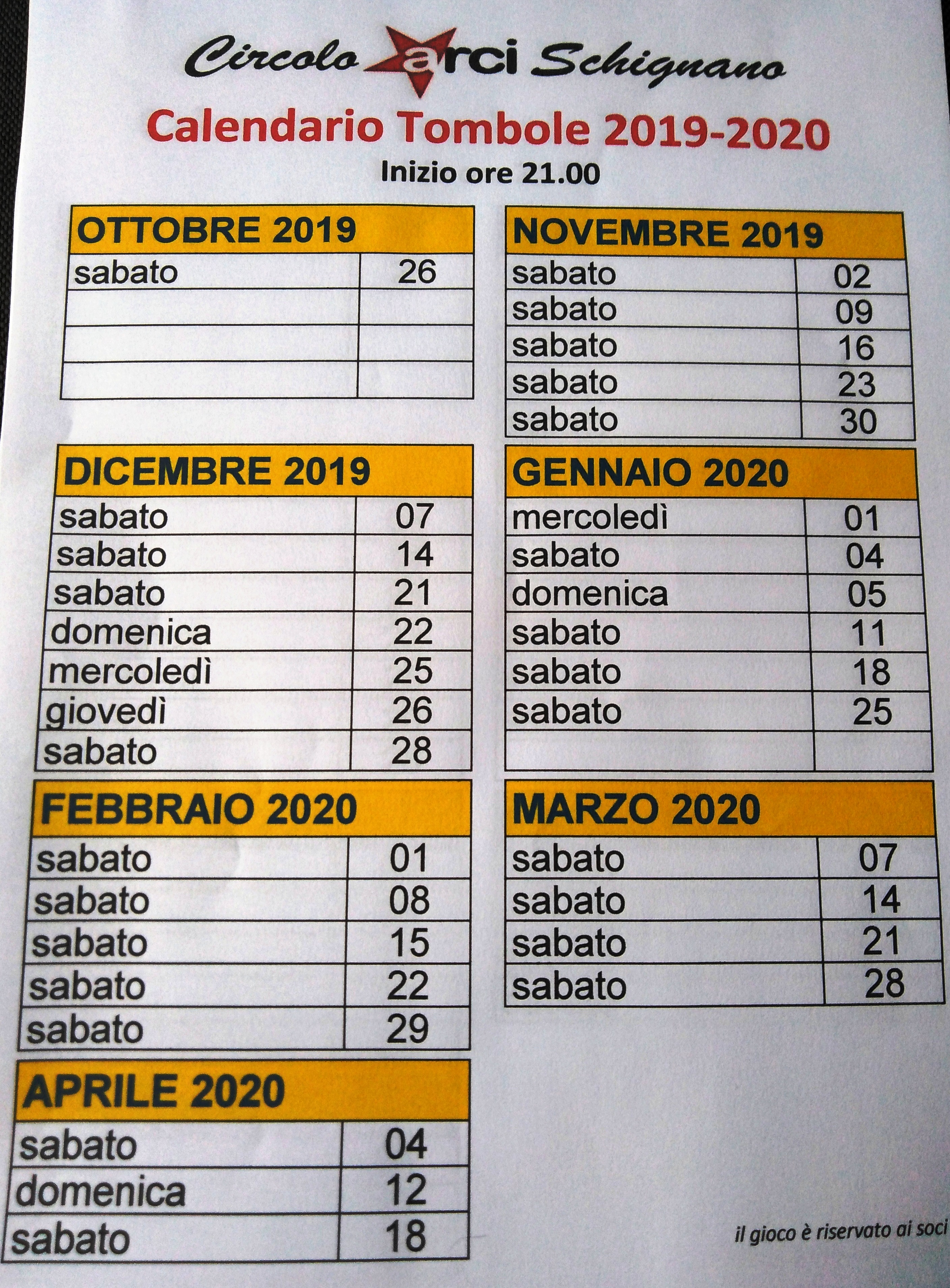 Il calendario delle tombole al Circolo Arci di Schignano. Possono partecipare tutti i possessori di tessera Arci 2019/2020