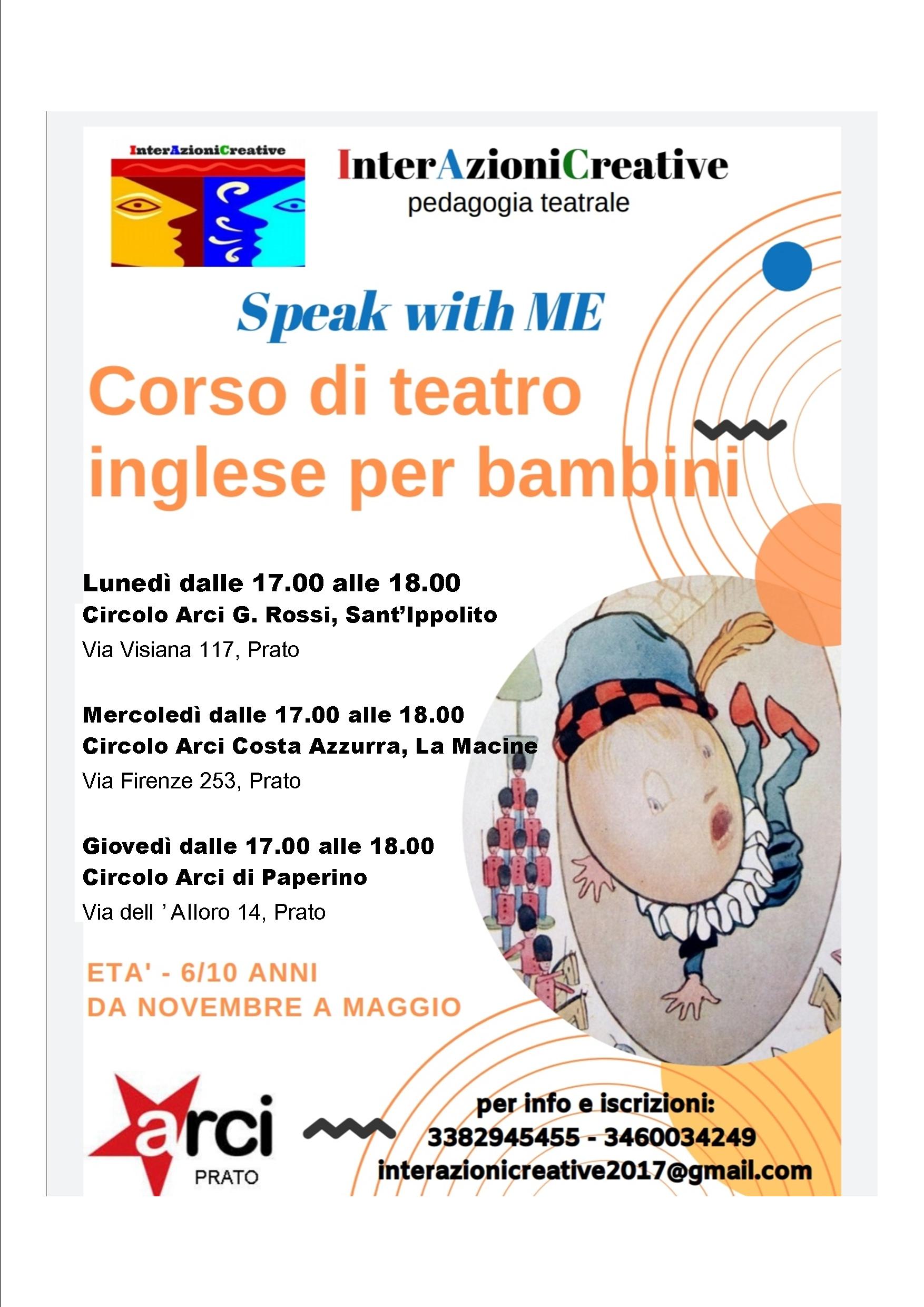 I corsi di teatro in inglese per bambini della compagnia Interazioni Creative ai Circoli Arci di Sant’Ippolito di Prato, La Macine e Paperino…