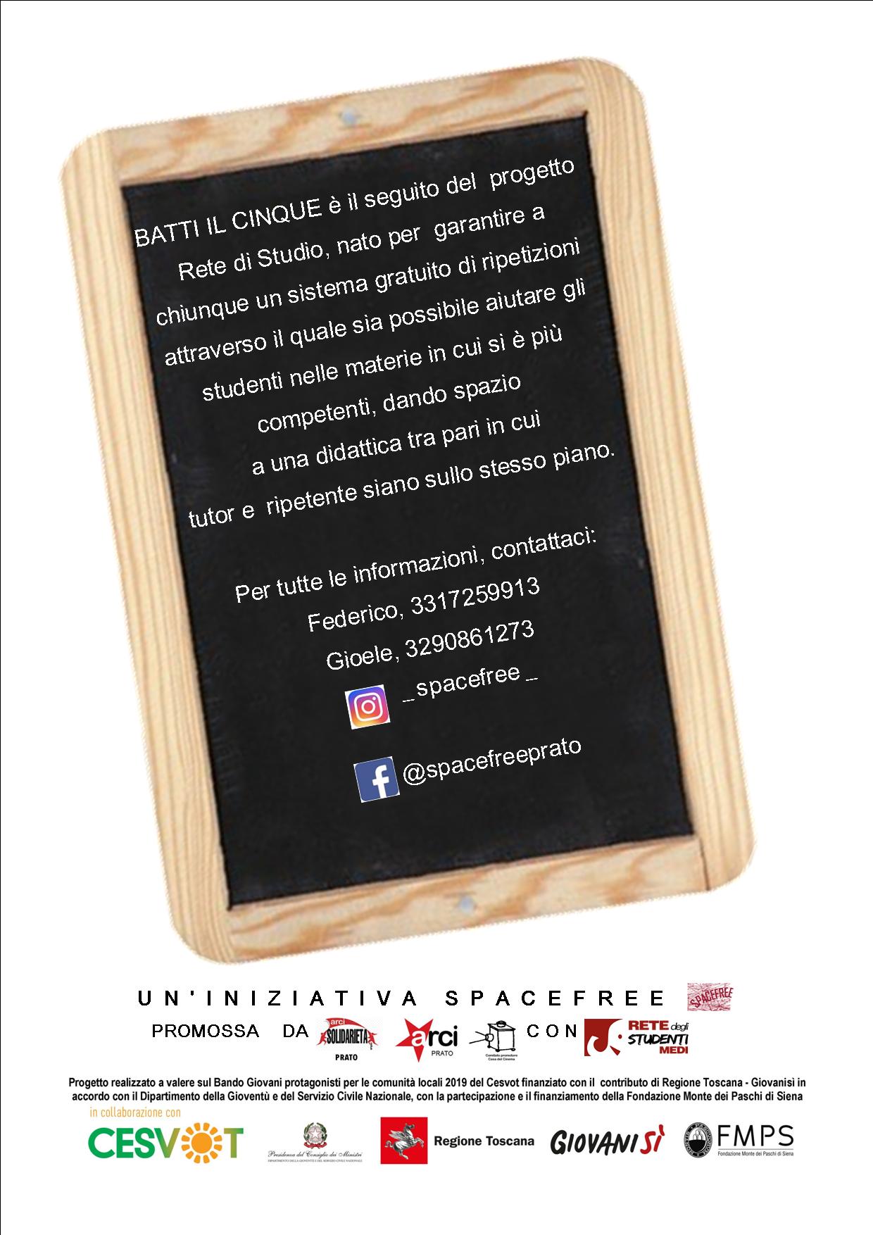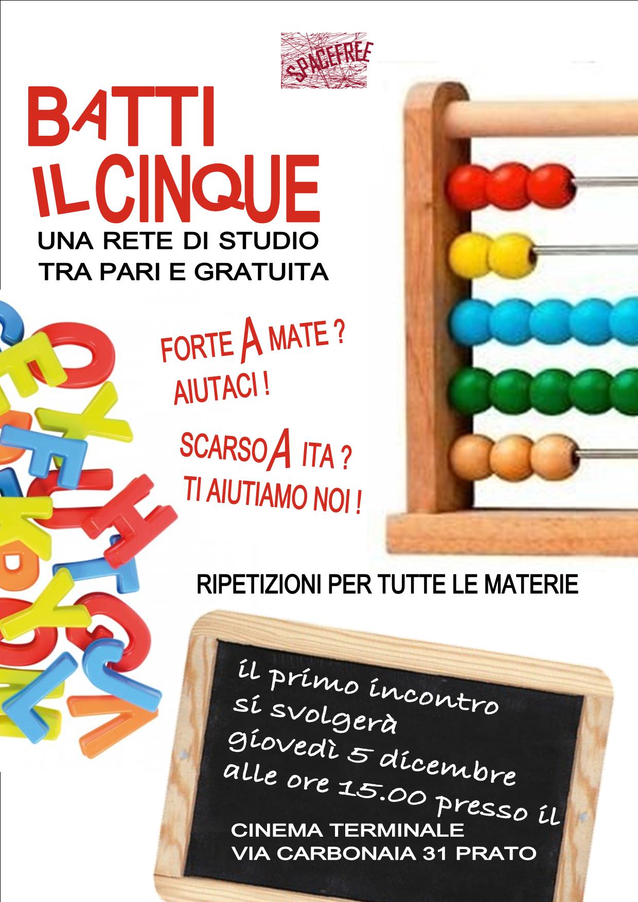 Giovedì 5 dicembre alle ore 15.00 al Terminale Cinema (via Carbonaia 31, Prato) si è tenuto il primo incontro di presentazione della rete di studio per gli studenti medi promossa nell’ambito del progetto Spacefree sostenuto dal Cesvot. L’iniziativa prevede ripetizioni gratuite di tutte le materie tra pari, le sessioni di studio si svolgono presso il Terminale Cinema e presso il Circolo L.Orsetti (via Filippino), Prato. Chi è interessato può chiamare Federico al 3317259913 o Gioele al 3290861273.