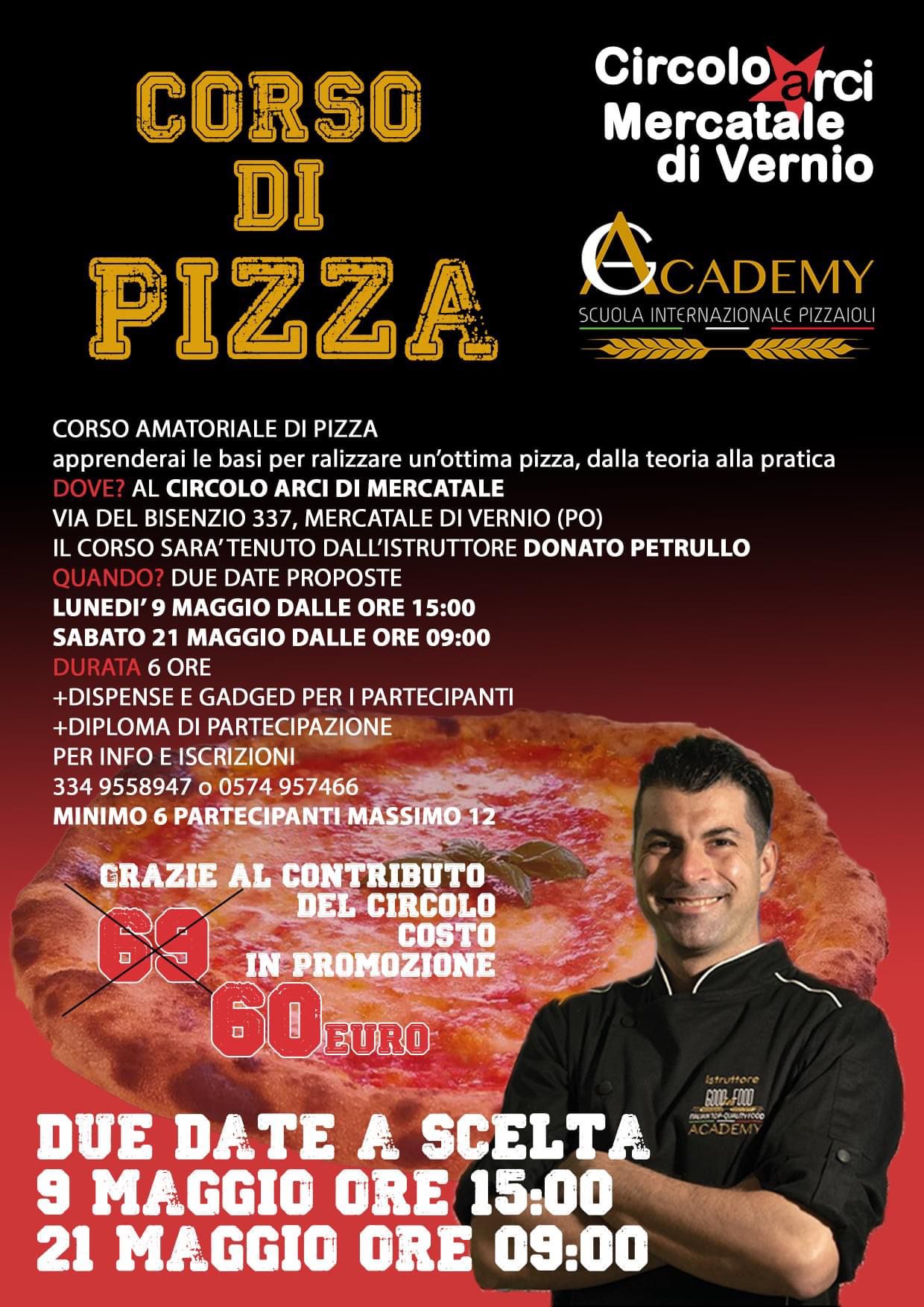 Lunedì 9 maggio al Circolo Arci Mercatale di Vernio (Via del Bisenzio 337), il primo di due appuntamenti per imparare a fare la pizza. Il corso sarà tenuto dall’istruttore Donato Petrullo, durata 6 ore, possibilità di scegliere tra due date: 9 maggio, ore 15:00 oppure sabato 21, ore 9:00.