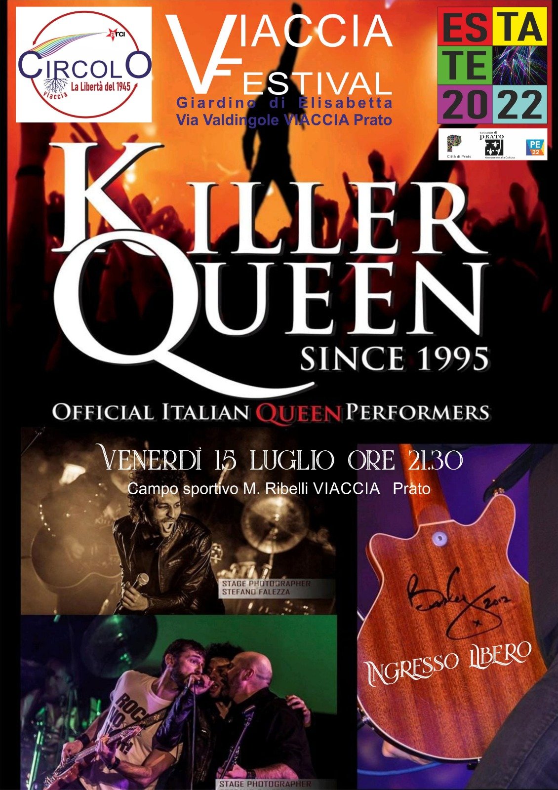 Venerdì 15 luglio al campo sportivo di Viaccia il concerto dei Killer Queen, storica tribute band del gruppo di Freddie Mercury, chiude l’edizione 2022 del Viaccia Festival e apre il Chiaro di Luna che continuerà ad animare le serate estive fino al 4 agosto. L’ingresso al concerto è libero.