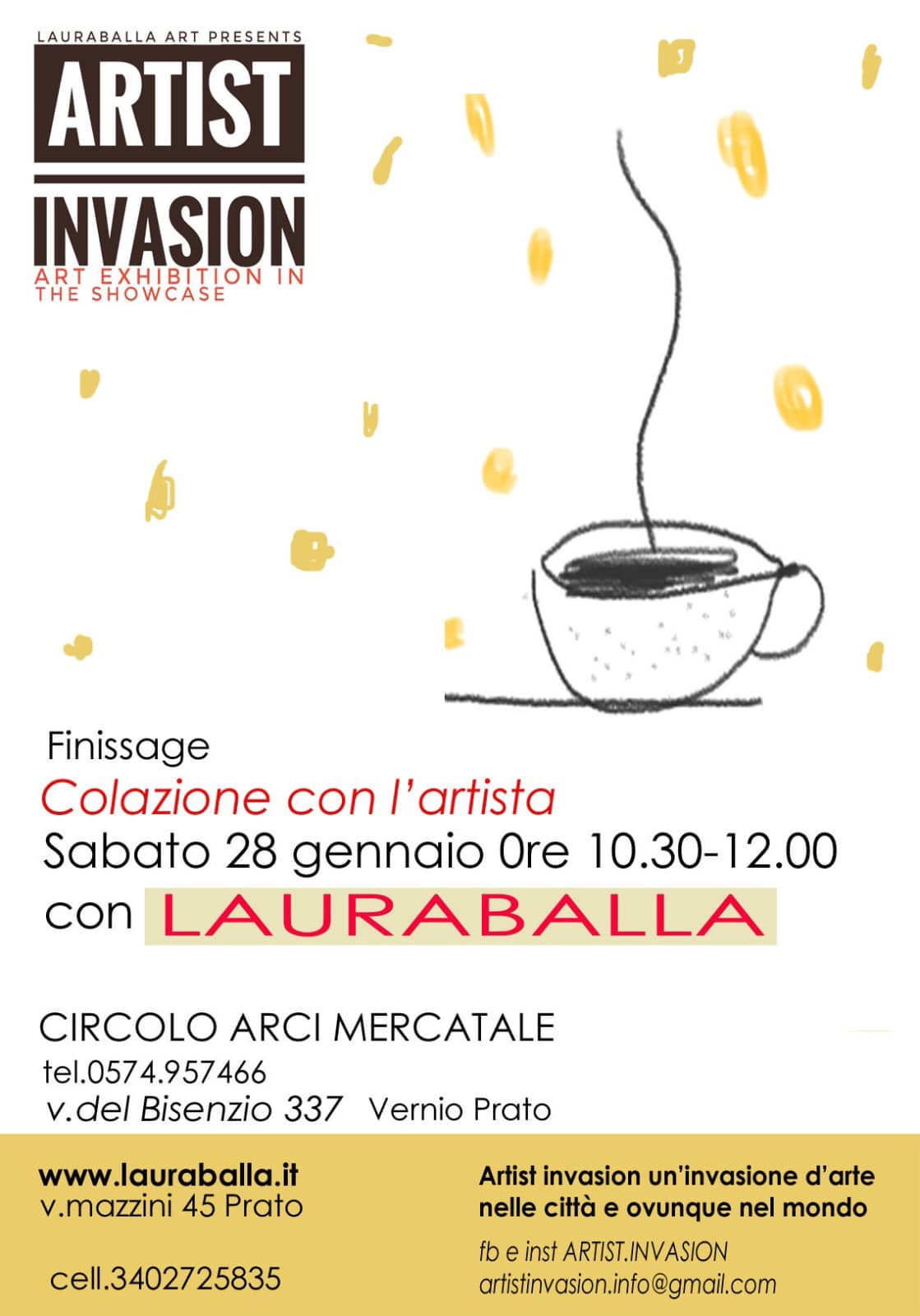 Sabato 28 gennaio, dalle 10:30 alle 12:00 al Circolo Arci Mercatale colazione con l’artista pratese Laura Balla. Per info. tel 0574 957466