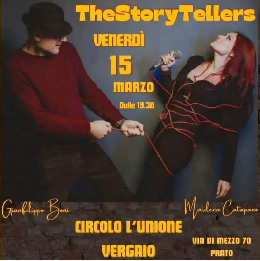 Venerdì 15 marzo dalle 19:30 al Circolo Arci “L’Unione” a Vergaio, “The Story Tellers” in concerto: Marilena Catapano voce e percussioni, Gianfilippo Boni voce, pianoforte e chitarra. Aperitivo con buffet e bevuta 5 €.