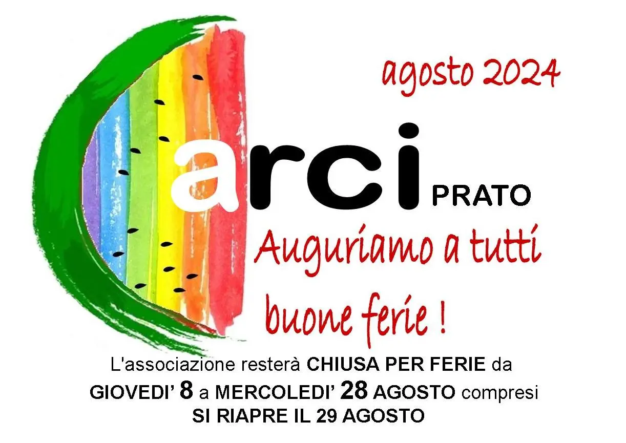 Gli uffici del Comitato territoriale Arci di Prato resteranno chiusi da giovedì 8 a mercoledì 28 agosto compresi. Lo staff augura a tutti buon agosto.