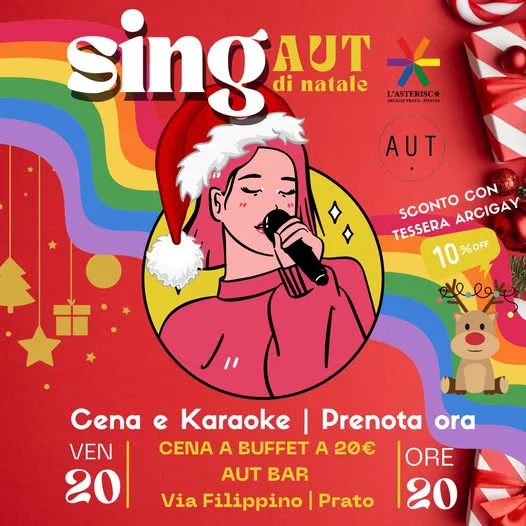 Venerdì 20 dicembre, dalle 20, al Circolo Arci L. Orsetti (Via Filippino, Prato) cena e karaoke a cura dell’associazione Arcigay – L’Asterisco.