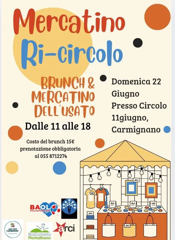 Domenica 22 giugno, al Circolo Arci “11 giugno” a Carmignano, mercatino dell’usato e brunch. In collaborazione con Polisportiva Baol, Biodistretto del Montalbano e Gas Fico.