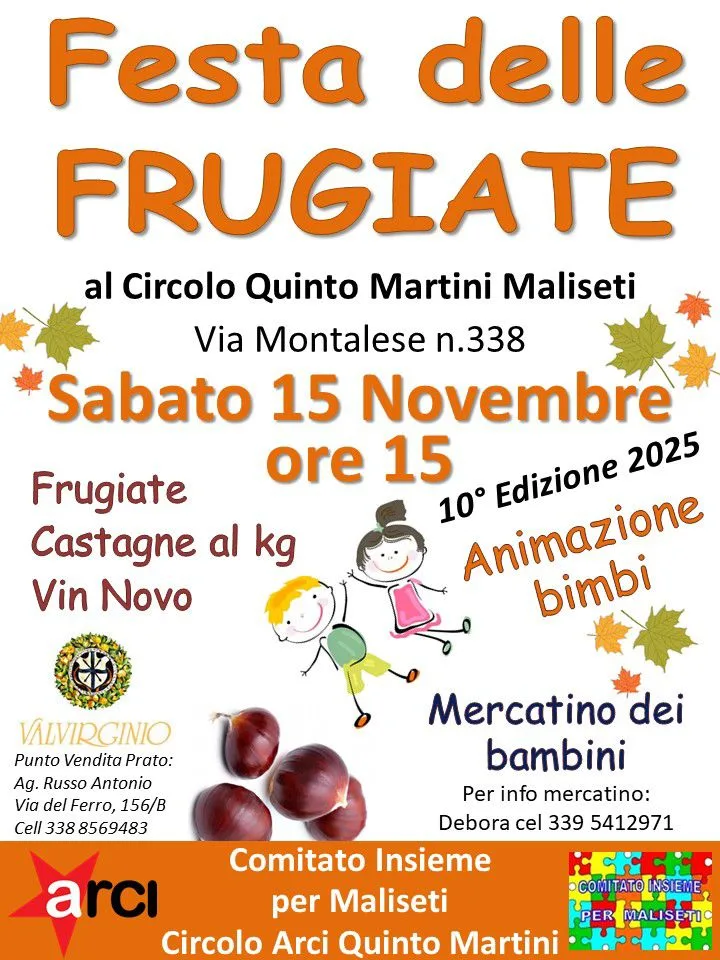 Sabato 15 novembre, al Circolo Arci “Quinto Martini” a Maliseti, 10a edizione della Festa delle frugiate, con mercatino dei bambini e animazione. In collaborazione con il Comitato “InsiemeperMaliseti”
