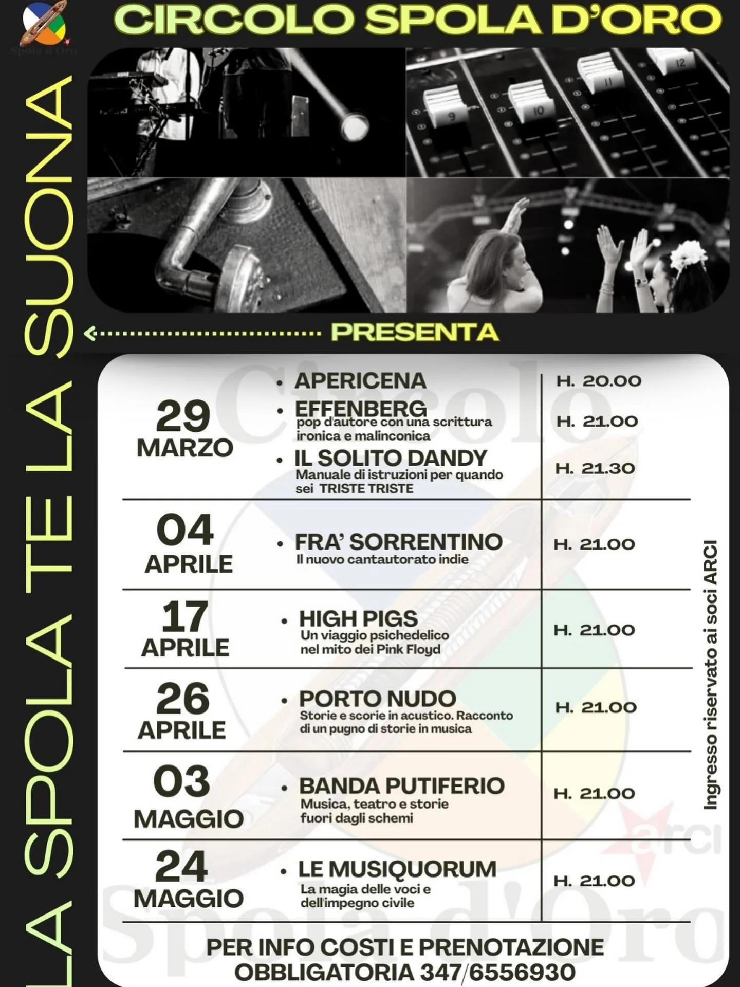 Dal 29 marzo al 24 maggio al Circolo Arci “Spola d’oro” a La Briglia, un calendario di appuntamenti con la musica : un programma che spazia dal pop all’indie, alla musica di impegno civile. Per info e prenotazioni 347/6556930. Il programma…