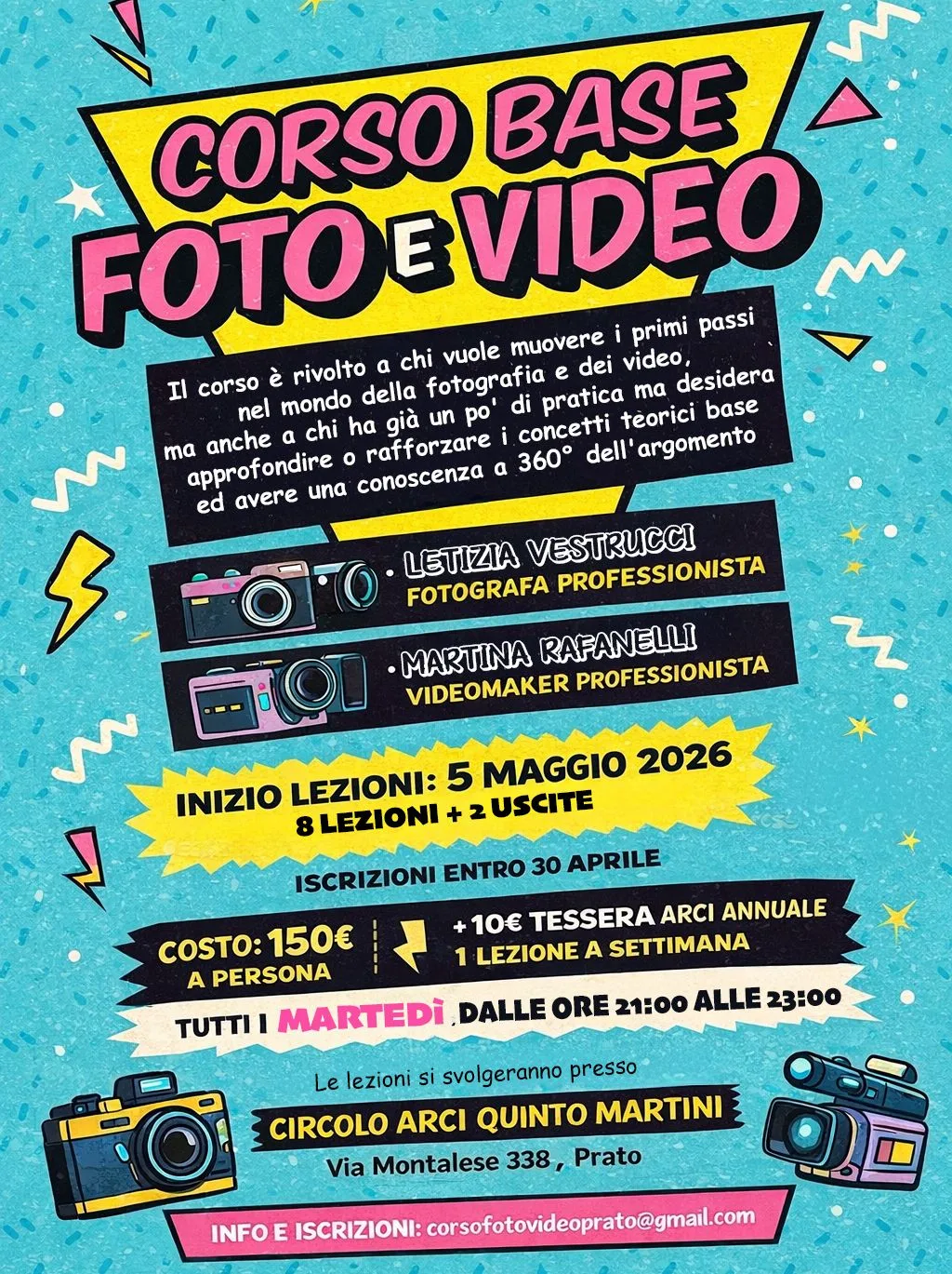 Per chi vuole muovere i primi passi nel mondo della fotografia e dei video, ma anche per chi ha già un po’ di pratica, dal 5 maggio al Circolo “Quinto Martini” a Maliseti, un corso in 8 incontri e 2 uscite a cura di Letizia Vestrucci (fotografa) e Martina Rafanelli (videomaker). Tutte le info…